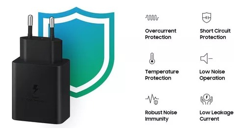 - 1 Ficha Samsung Super Fast Charge con salida USB-C y enchufe dos en línea