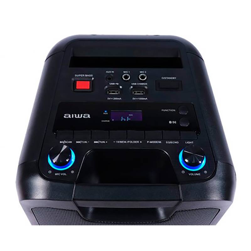 Potente, versátil y con el estilo clásico de Aiwa. El sistema de audio portátil ofrece un sonido envolvente con luces LED integradas para acompañar cada ritmo. Con conexión Bluetooth, entrada USB, AUX y radio FM, es ideal para animar reuniones, fiestas o simplemente disfrutar buena música en casa. Además, cuenta con función TWS para duplicar la potencia al conectar otro parlante.